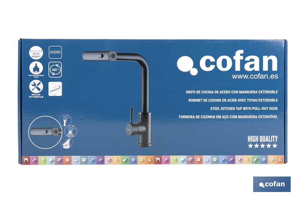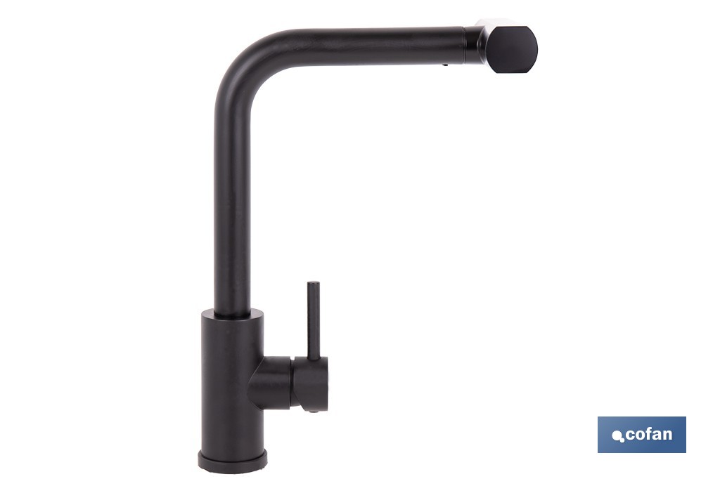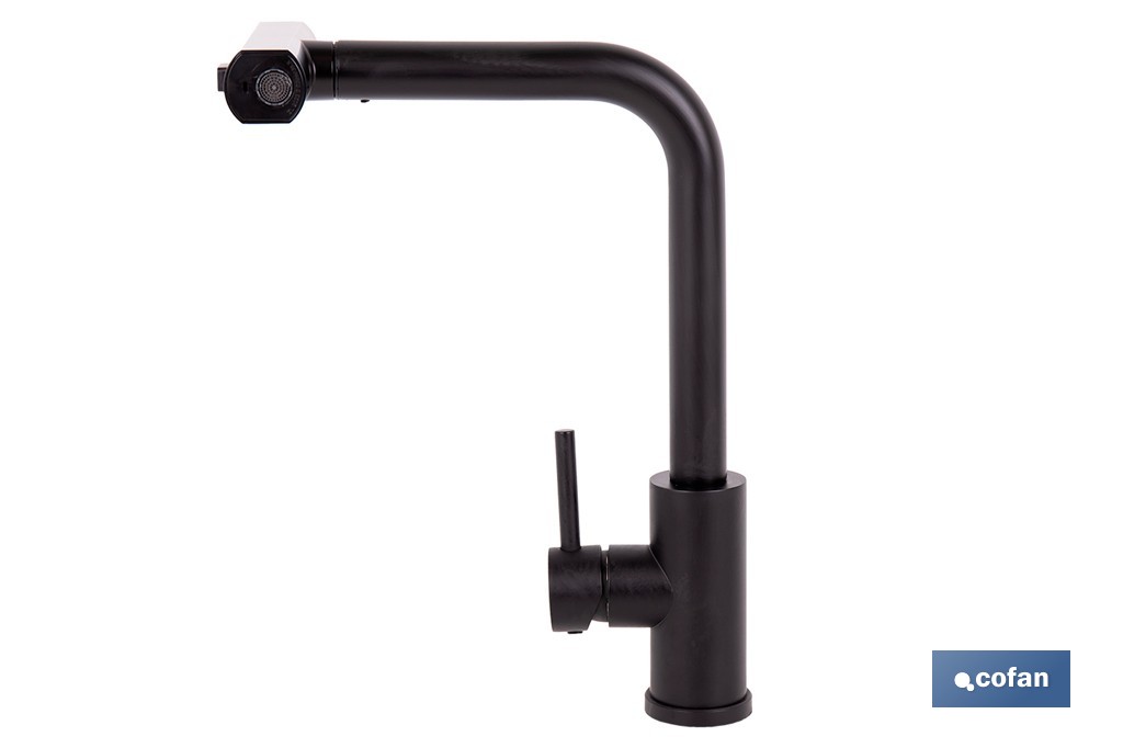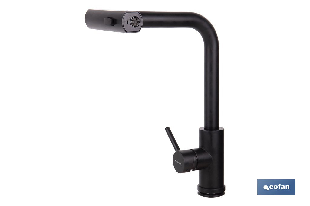 Grifo de cocina negro con 3 funciones y giro 360º | Material: acero inoxidable 304 | Cartucho cerámico de Ø35 mm